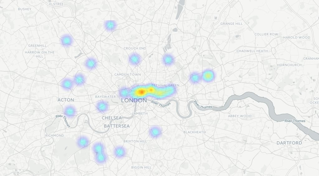 Instant Offices also mapped Companies House data, which proved a useful visual overview for where new tech companies are expanding, showing that Tech City is certainly a hub, but not the only growth area, as startups are sprouting up all around the capital, with a second hot spot in Stratford.