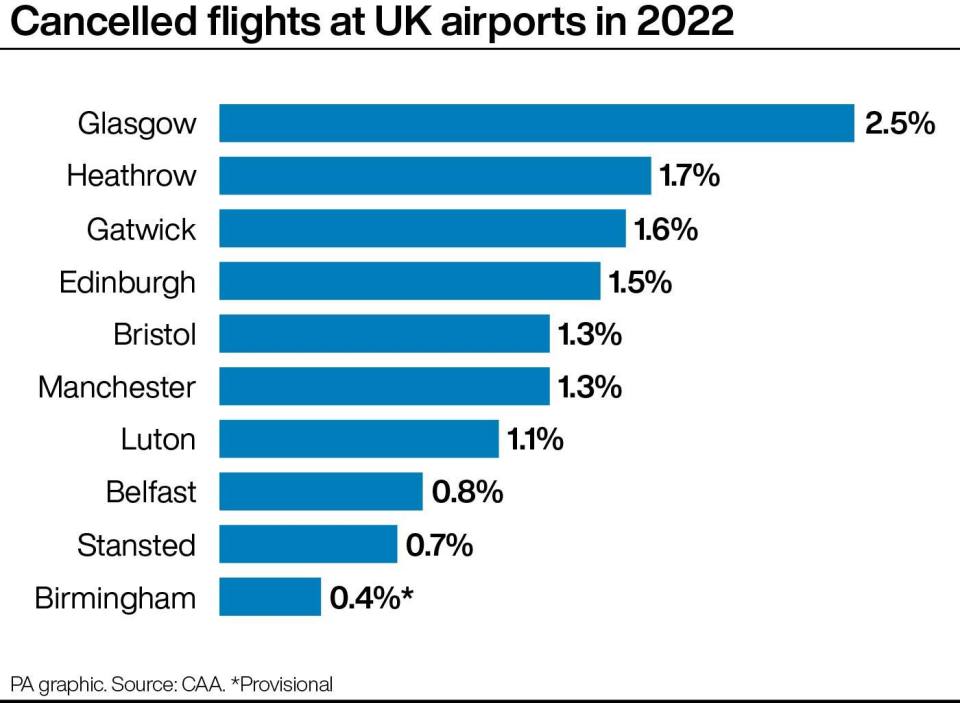 Around 2 per cent of flights were cancelled in 2022, with May and June the worst affected months as the aviation sector failed to recruit and train enough staff to cope with a surge in demand for holidays.