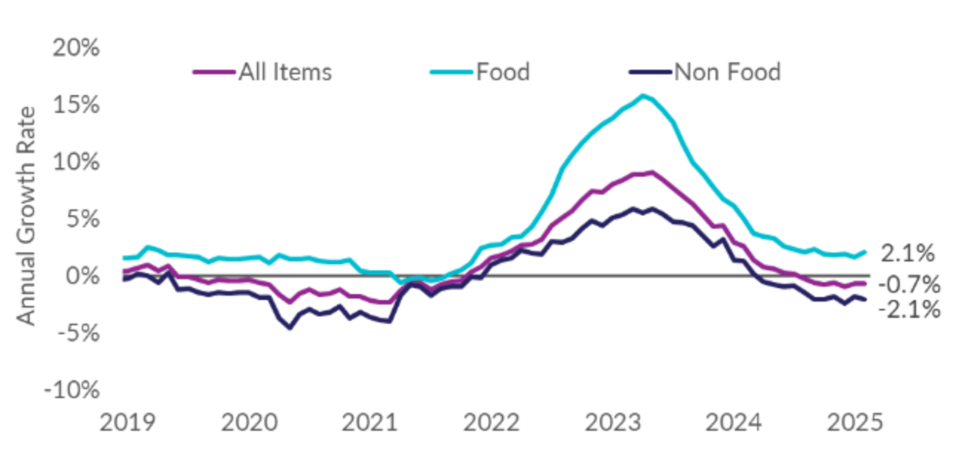 Shop prices fell by 0.7 per cent year on year in February against a decline of 0.7 per cent in January, driven by a 2.1 per cent drop in retail prices.