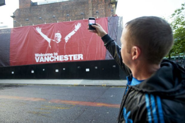 Manchester United manager Louis Van Gaal greeted with “Welcome to Vanchester” poster ahead of first game in charge