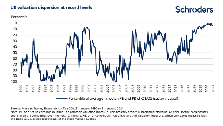On no occasion in the past 30 years has valuation dispersion within the UK stock market been higher than since coronavirus.