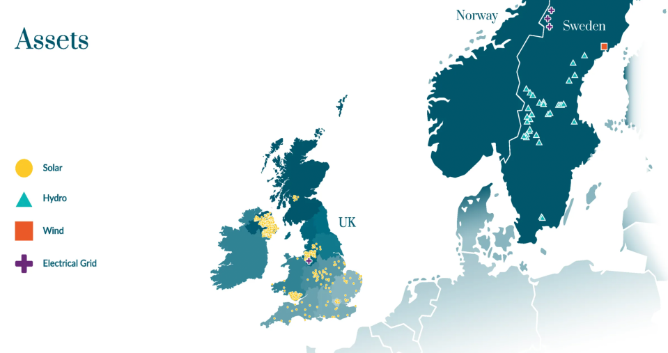 Its focus in the UK is chiefly in the solar industry — which makes up 47 per cent of its overall portfolio — and in the hydro space in Sweden, and that is about 42 per cent of its holdings.