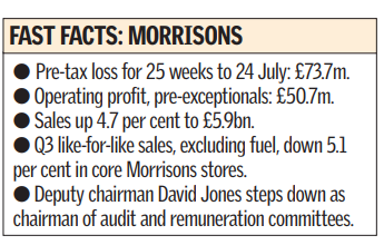 The retailer has been focused on Safeway and the core chain has suffered, with like-for-like sales, excluding fuel, down 5.1 per cent in the third quarter. Converted stores delivered strong, albeit slowing, sales increases, up 11 per cent like-for-like, excluding fuel, in the 12 weeks to 16 October.