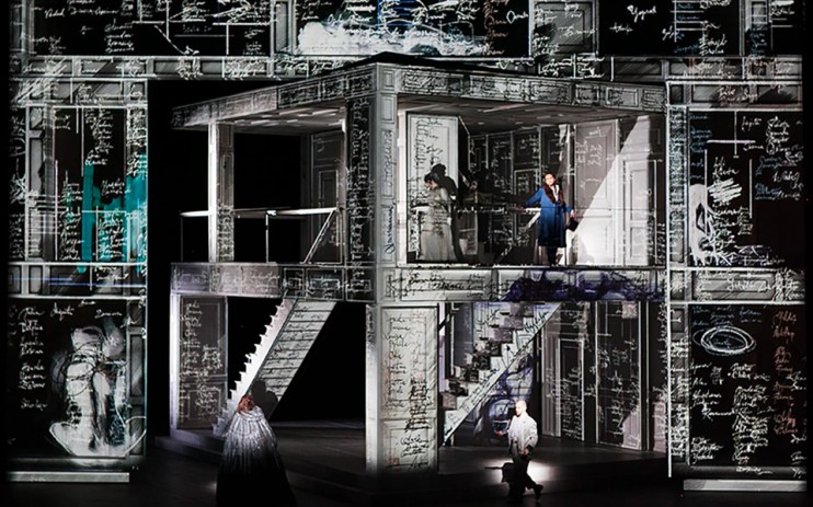 This production is distinguished by Es Devlin’s revolving white set, a house that folds in and out of itself, pummelled by a series of lurid projections that display Holten’s vision for Don Giovanni as a philanderer driven mad by his pernicious exploits. Aside from making your eyes hurt, the projections are too obvious and too garish to work, distracting from some excellent performances.