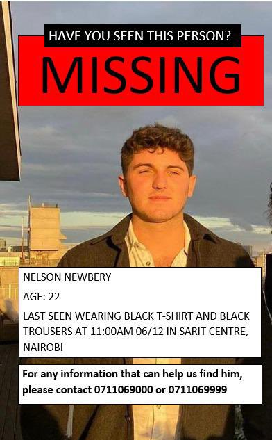Last Tuesday, friends of 22-year old Nelson Newbery, originally from London, sounded the alarm after the young professional vanished from Sarit Centre, an upmarket shopping mall in the relatively posh district of Westlands, Western Nairobi.