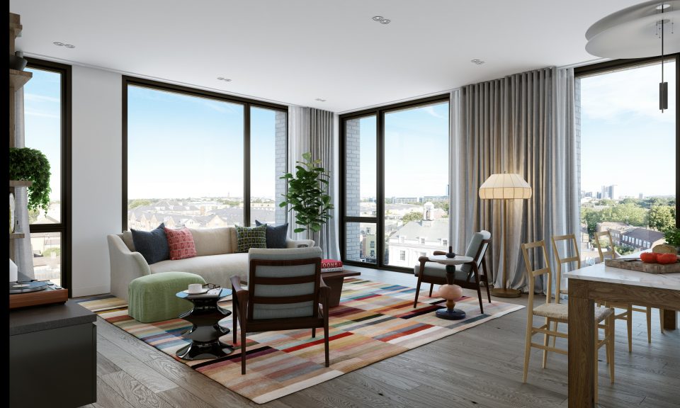 In keeping with the local area, lots of the apartments will have an industrial feel: think cantilevered balconies and concrete worktops.