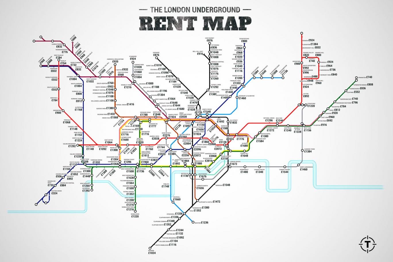 A new London Underground map reveals the average (staggering) rent at every Tube stop in London.