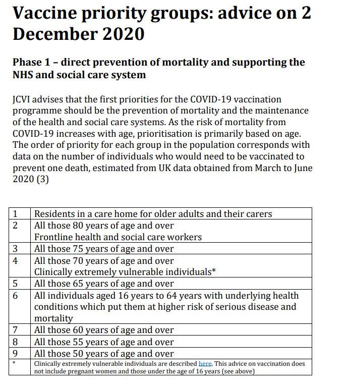 Professor Wei Shen Lim, chair of the Joint Committee on Vaccines and Immunisation (JCVI), this morning set out the NHS priority list for vaccination.