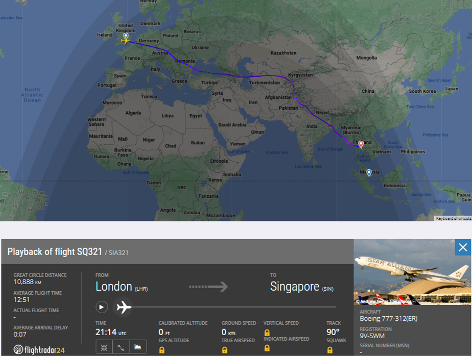 It had been scheduled to land at the Singapore Changi Airport at 6:10pm.