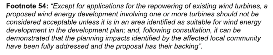 Under the current restrictive planning system, no onshore wind farm can go ahead unless the local authority has drawn up a detailed local plan which identifies all areas that would be suitable for onshore wind development.