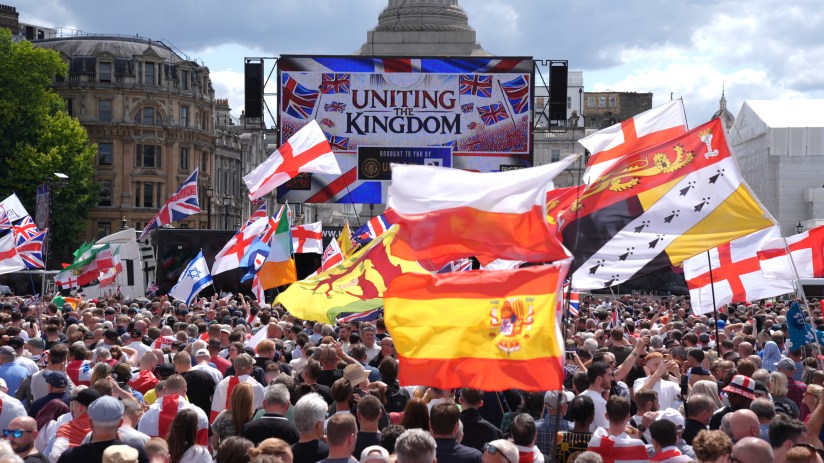 Crowds gather in central London for protest led by Tommy Robinson Live! His protest is set to move from the Royal Courts of Justice to a rally in Trafalgar Square.