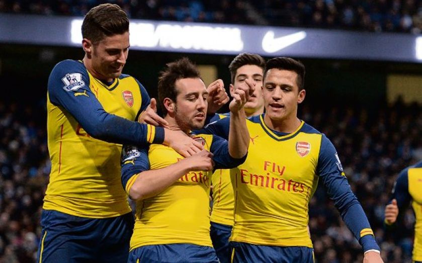 Midfielder Santi Cazorla scored a penalty and set up Olivier Giroud to head the second as the Gunners inflicted a major dent on Manchester City’s title defence and did leaders Chelsea a huge favour.