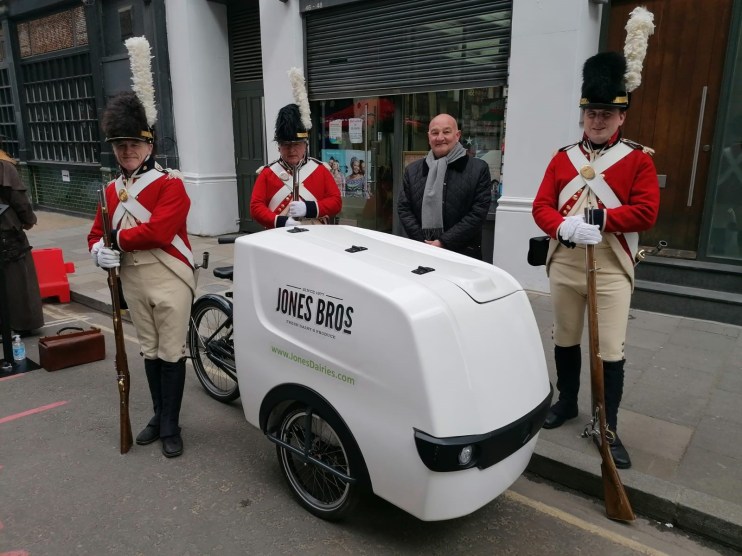 – City Corporation Member Henry Jones with one of his delivery vehicles and members of the Portsoken Volunteers, at an event earlier this year to support businesses in Aldgate