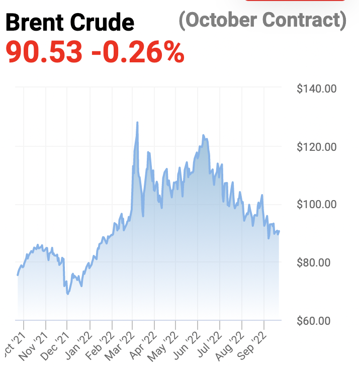 Brent Crude has dropped to $90 per barrel, following six months of near-continuous trading above the $100 milestone after Russia’s invasion of Ukraine in February.