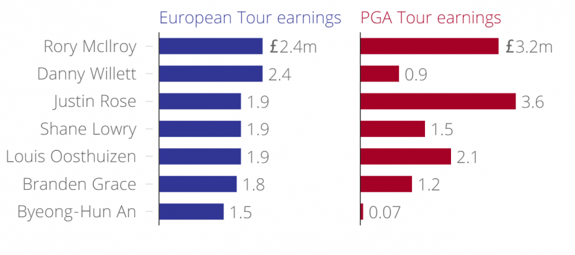 After McIlroy, Rose is the only other player to have made significant money on both the PGA and European Tour.