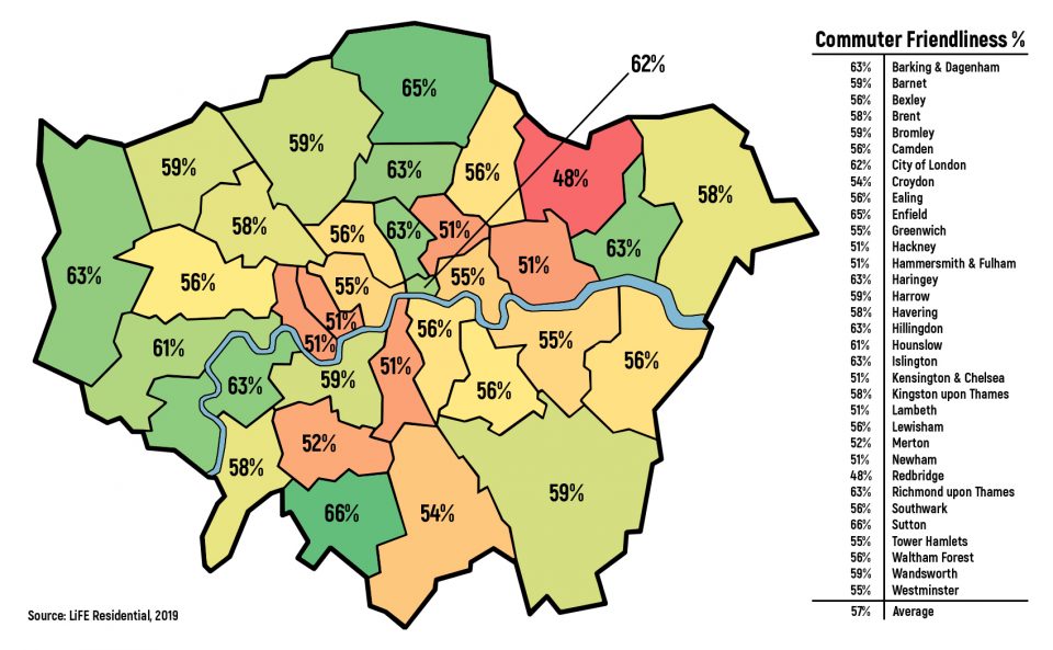 Sutton’s commuters are the friendliest, with a rating of 66 per cent, while Redbridge’s have the most room for improvement at 48 per cent.
