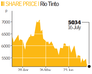 The Anglo-Australian firm said its “expansion projects remain on schedule and on budget.” The business said mined copper production was up 15 per cent on the corresponding quarter. The stock closed down 3.8 per cent at 5,025p.