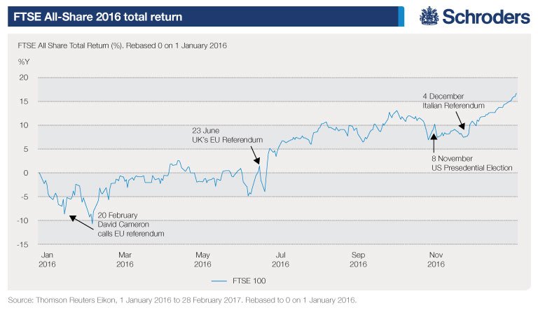 At the same time, commodity-related sectors such as oil & gas and metals & mining also performed well. They were viewed as being among the chief beneficiaries of sterling weakness against the US dollar, with commodities generally being priced in dollars.