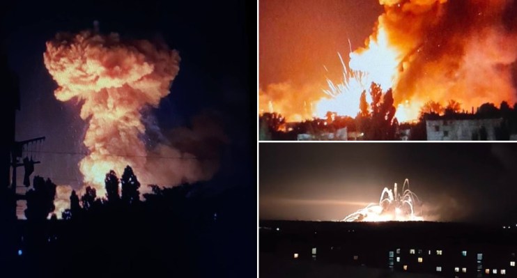 The Russian ammunition depot was apparently targeted by Ukrainian forces overnight, resulting in a massive blast captured on social media.
