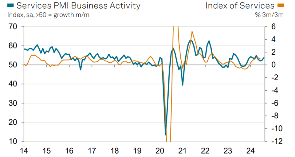 An improving economic backdrop also helped to lift activity. The survey noted that customers were increasingly willing to spend as inflation has receded and confidence has built. The prospect of interest rate cuts in the near future should also help to sustain momentum.
