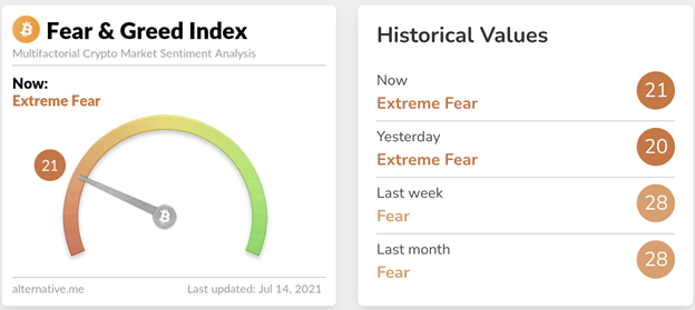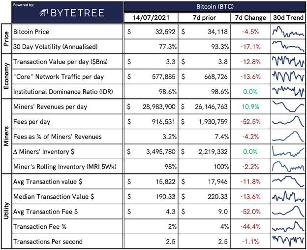 Bitcoin is now in its eighth straight week stuck in the range of between roughly $30,000 and $40,000. It was below $32k for the first time since June 26 today, down almost four per cent over the last 24 hours. Ethereum is also below $2,000, down roughly seven per cent in the last day and 20 per cent over the past week – more than any other of the top 10 largest coins by market cap, although they’re also showing significant reductions.