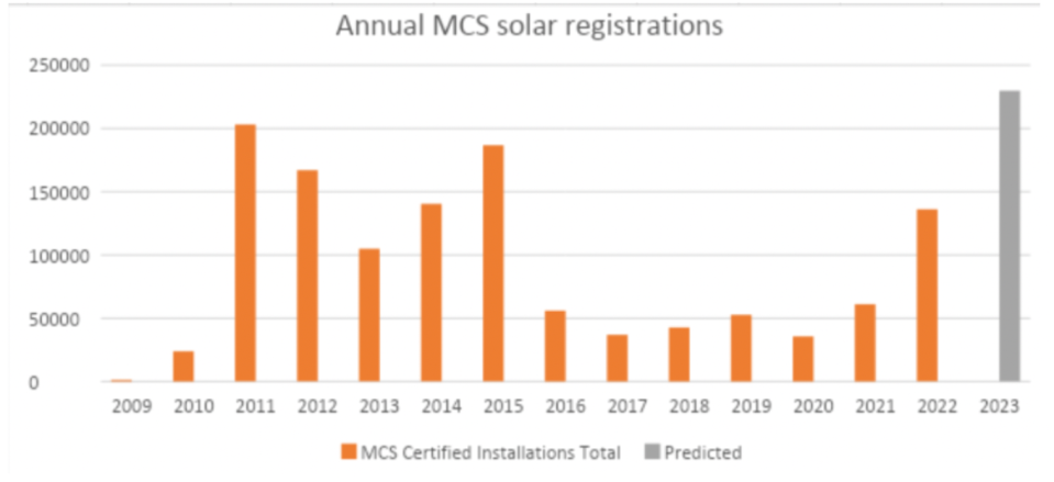 If the current pattern of growth continues, about 230,000 installations will be made in 2023, according to the latest data from industry certifier MCS – shared exclusively with City A.M. last week.