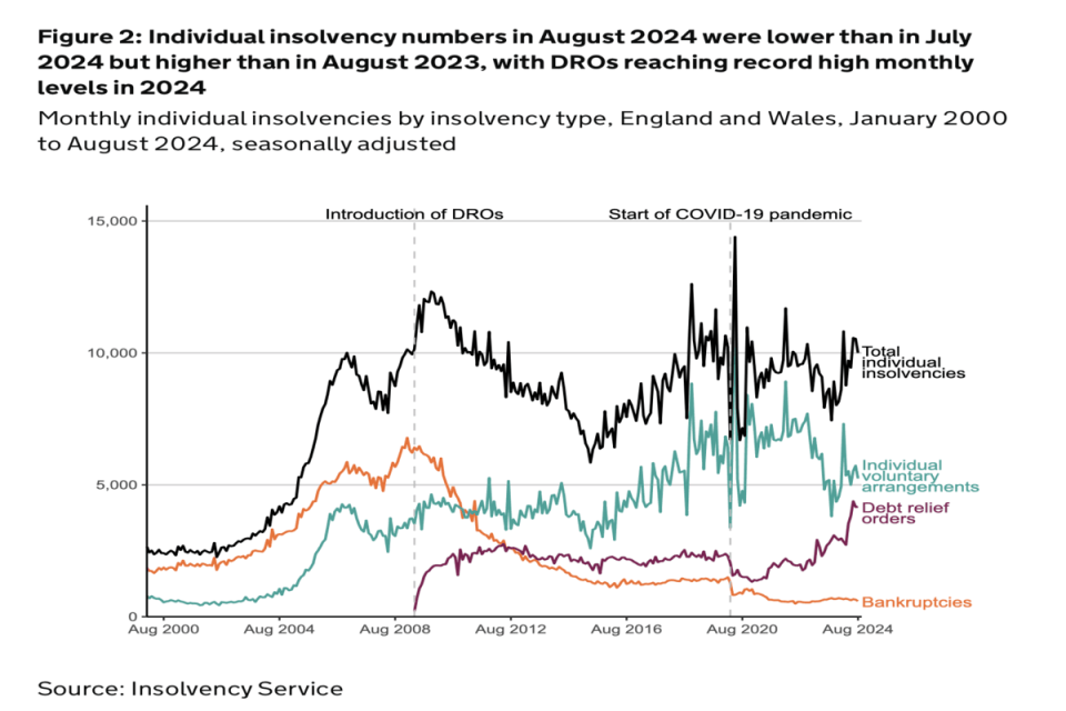 Around 10,000 individuals entered insolvency in August 2024, five per cent lower than July’s total but 16 per cent higher than during the same month last year.