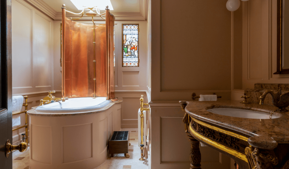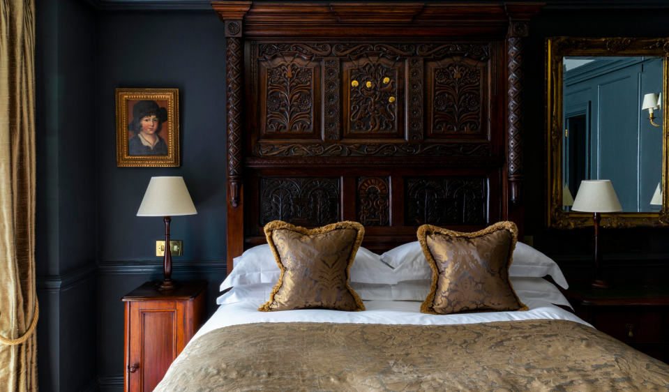 There’s no lobby. The receptionist politely gave me a large metal key to my room – the Batty Langley suite on the first floor – and I walked through the carpeted hallway, mirrors reflecting my new aristocratic reflection back to me. I walk past the dimly lit Tapestry Room and Parlour, which features Georgian sofas, art and an honesty bar. I don’t see anyone else.