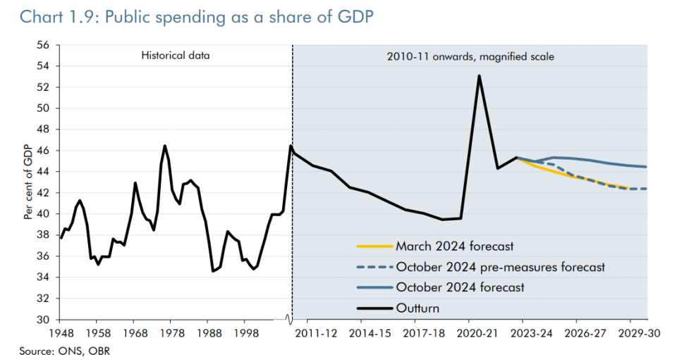 In its latest economic forecasts, published alongside the Budget, the independent fiscal watchdog forecast that the state would expand to 44 per cent of GDP, almost five percentage points bigger than it was before the pandemic.