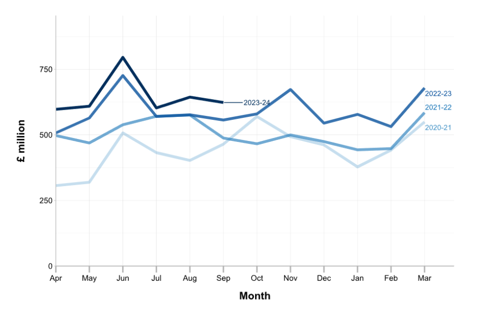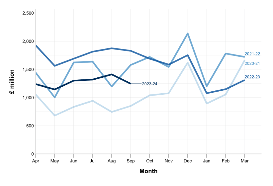 Tax figures released by HM Revenue and Customs (HMRC) on Friday morning showed an upward trajectory in takings between April and September.