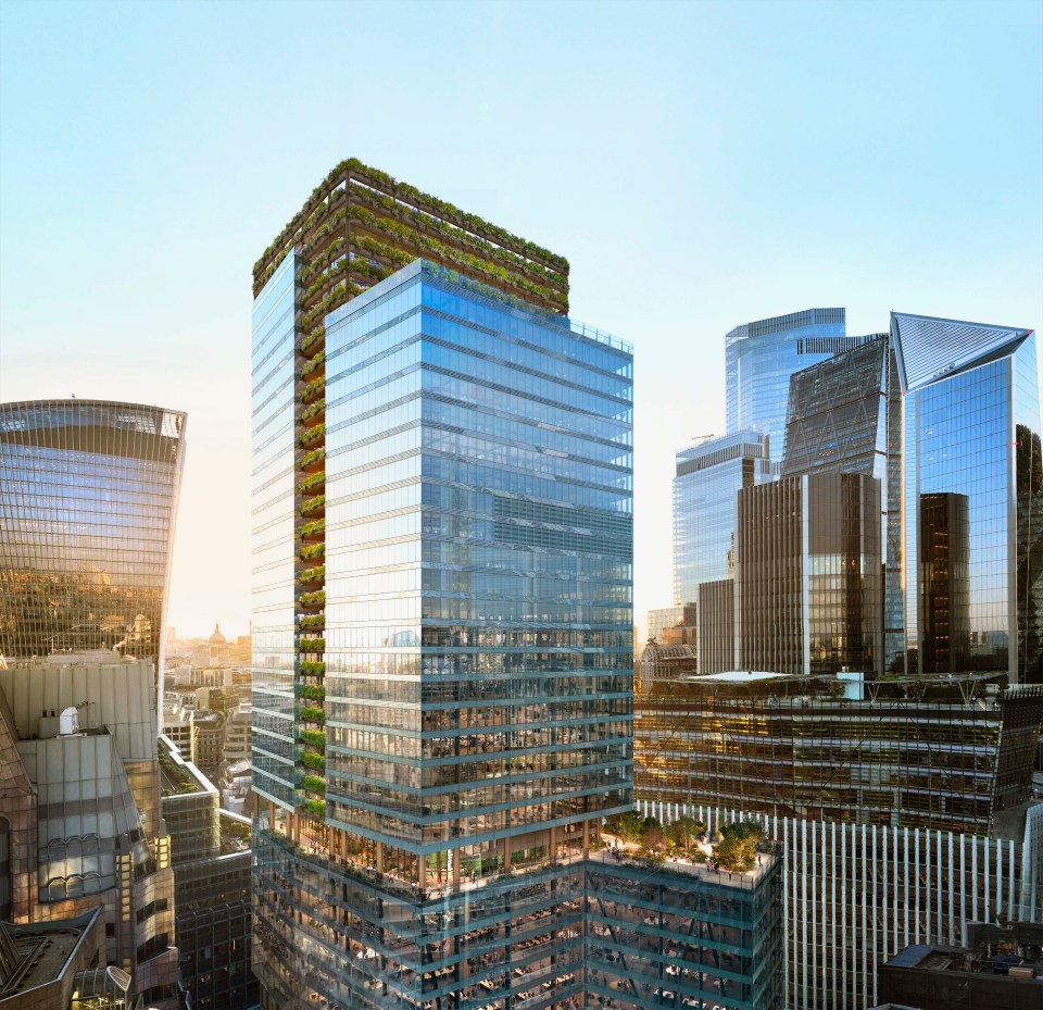 This £500m, 36-storey building was approved by the City of London Corporation last December. The proposal was put forward last April by the UK property developer behind The Shard – Sellar – and Japanese developer Obayashi. Construction will start in 2026 once the existing building is vacated and will be completed in 2029.