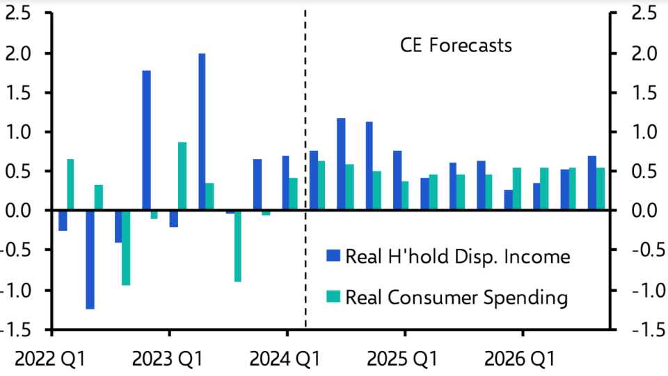 Ashley Webb, UK economist at Capital Economics, expected this supportive backdrop to continue. The consultancy expects real household income to climb by 2.5 per cent across 2024 and between 3.0 and 3.5 per cent next year.