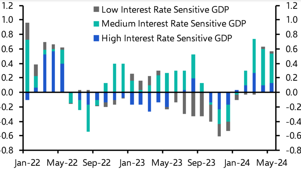 Indeed, the prospect of lower rate cuts already has. Analysis by Capital Economics suggests that the sectors more sensitive to interest rates have contributed the most to GDP growth. This includes construction, retail and hospitality.