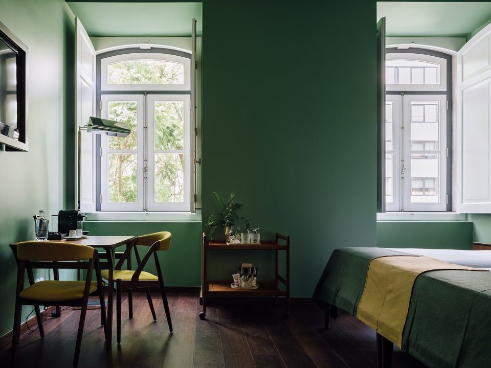 The 56 modernist rooms and three large suites are each distinguishable by bespoke furniture and a unique bar trolley, one-off signature pieces stocked with a pair of welcoming gin and tonic kits. The toiletries are by the 130 year old luxury soap and perfume maker Claus Porto, the ceramics by Costa Nova. Even the toothpaste has been selected to be in keeping with the hotel’s retro theme; it’s Couto, originally formulated by the Portuguese pharmacist Alberto Ferreira do Couto in 1932.