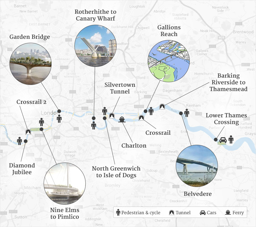 From the Diamond Jubilee bridge linking Fulham and Battersea to the Lower Thames Crossing, which will link Essex and Kent, Londoners will have 13 new ways to cross the Thames by the year 2050.