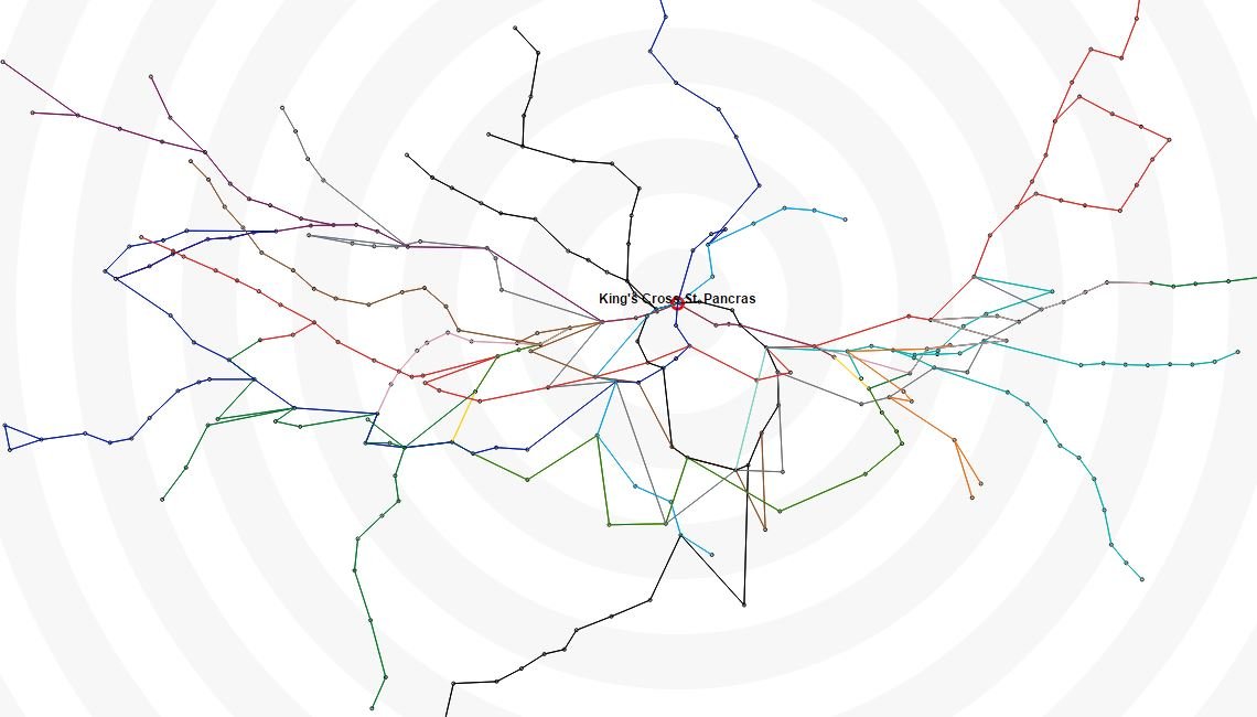 You double-click on a station, or click on a station from the sidebar and it becomes the focal point on the map, shifting all other destinations around based on how long they will take to reach from your point of origin, and giving you an estimated travel time in minutes.