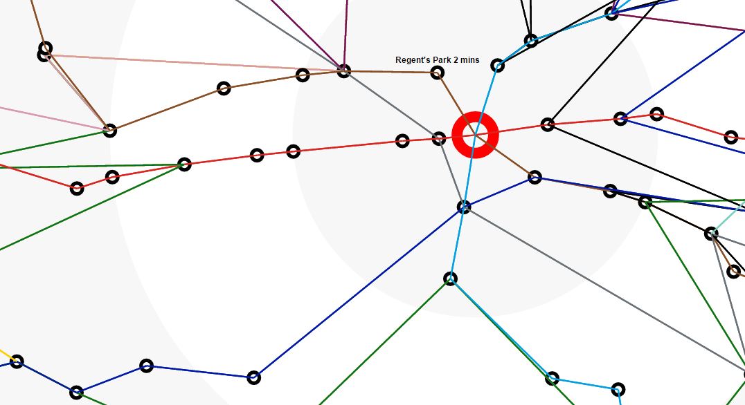 “The time taken is calculated using average journey times from TfL with an additional 5 minutes for each line change,” he writes.