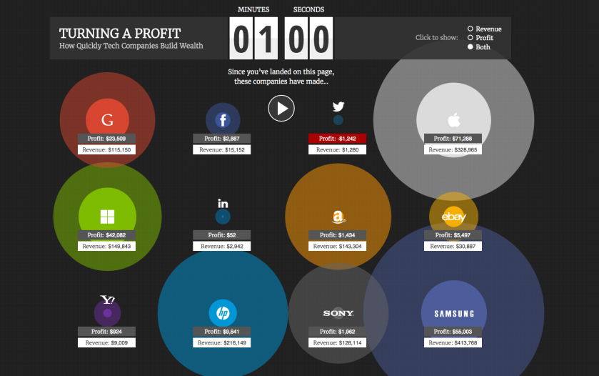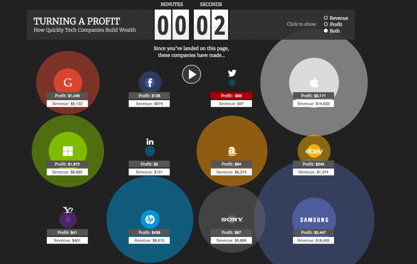 But payments processor WorldPay Zinc has a handy graphic which charts just how quickly the revenues and profits rack up for some of the world's biggest tech companies, based on historical earnings data. Who's the top tech earner?