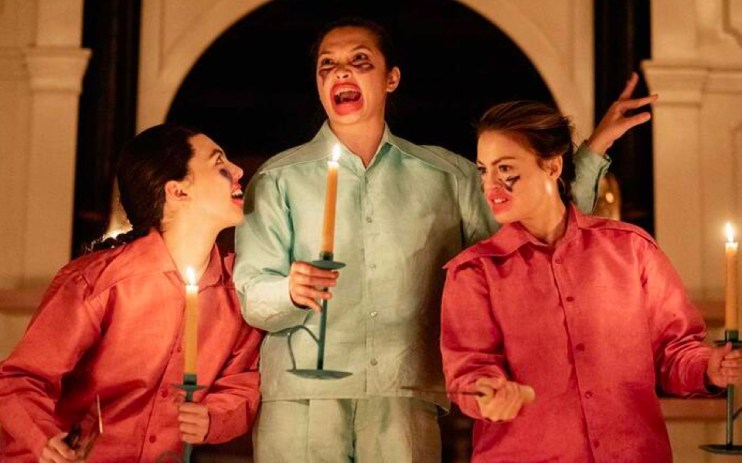 The Sam Wanamaker Playhouse is lit by candles, and productions often find creative ways for characters to interact with the candelabras. An ingenious conceit of this play is that characters carry with them a candle on-stage, which represents their lifeforce while it is burning, and their body once it is snuffed out. This reality becomes so accepted by the audience that seeing a candle put through a hand-cranked meat mincer and attacked with a power-drill is recognised at once as a hilarious atrocity. Titus Andronicus will punch you in the funny bone, and the gut.