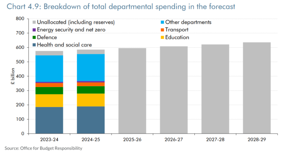 40 per cent of government expenditure – including spending on health, education and transport – falls under departmental spending plans, which next come up for review in March 2025.