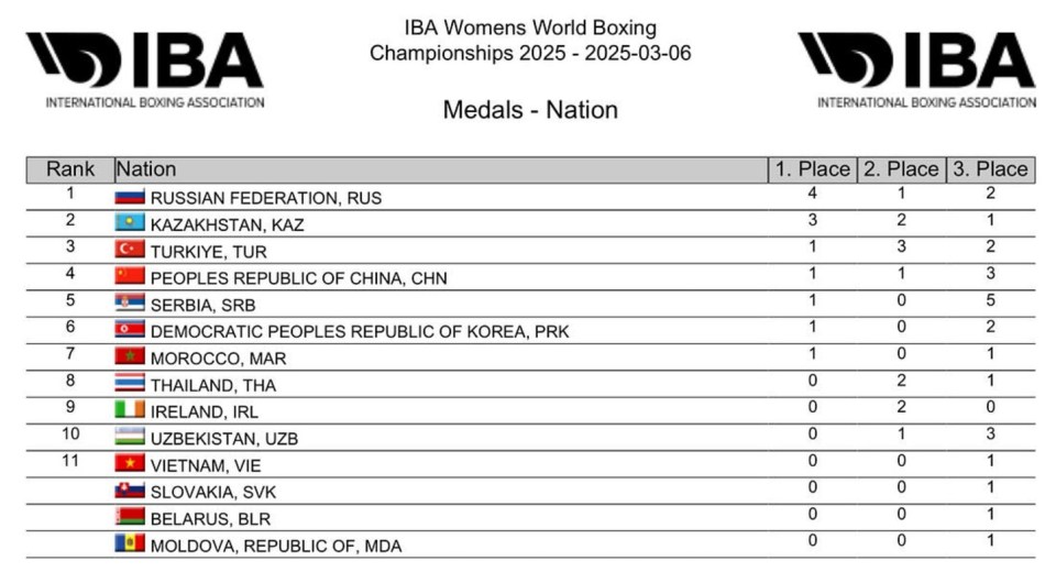 A total of 239 boxers from 51 countries took part in the IBA champs in Nis. Ireland aside, the medal table largely reads like a roster of friends of Vladimir Putin. However, boxers from the likes of Germany, Sweden, Australia and Spain competed too.
