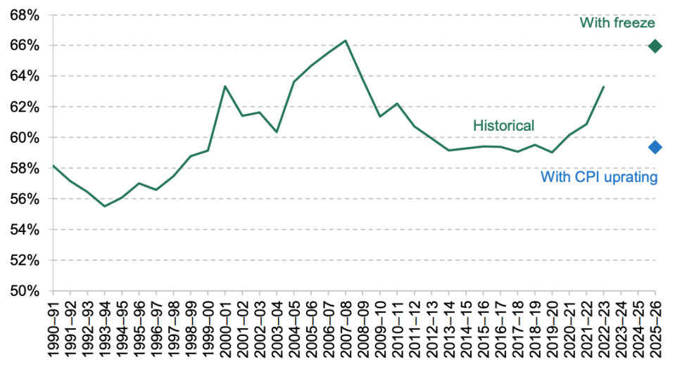 Freezing tax thresholds creates “fiscal drag,” a process in which people are forced to pay more tax by inflation.