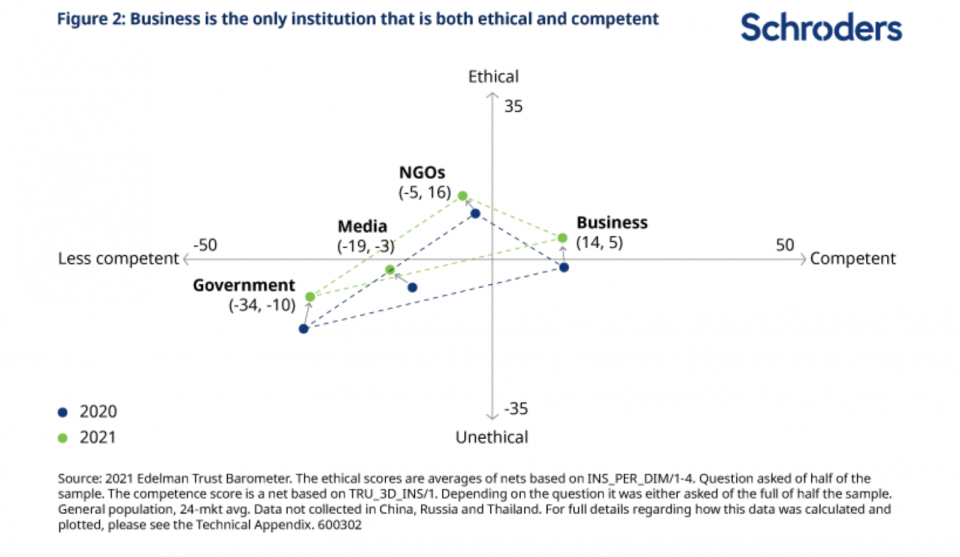 There is one institution that is considered both ethical and competent: business.