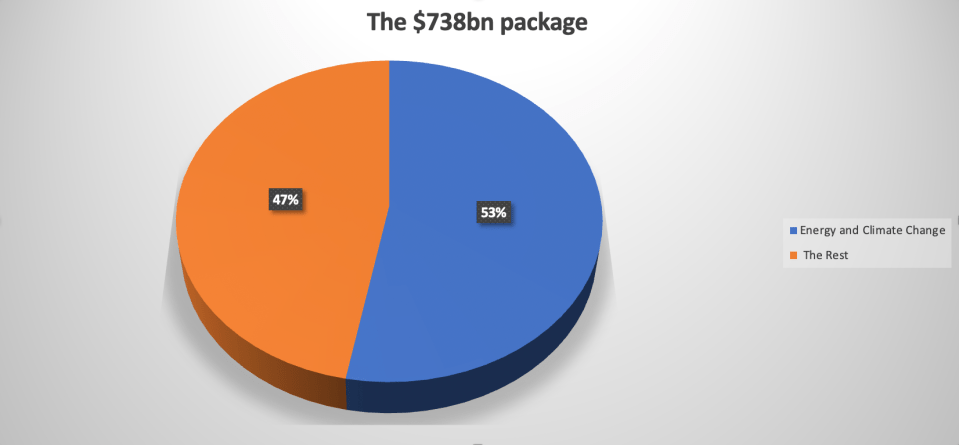 The bill will raise $738bn, which includes $391bn of committed spending on clean energy – making it the largest piece of federal legislation ever to address climate change.