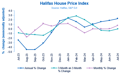 House prices increased by 0.8 per cent in July, with the average property now costing £291,268, up from £289,042 in June, according to the Halifax house price index. This surge sets the annual growth rate at 2.3 per cent.