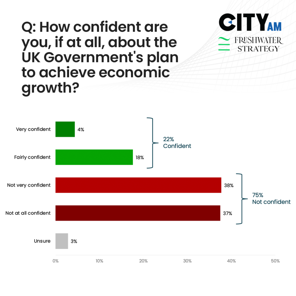 Some 75 per cent of voters polled for City AM also said they were not confident in the UK government’s plan to deliver economic growth, including 52 per cent of Labour’s 2024 voters.