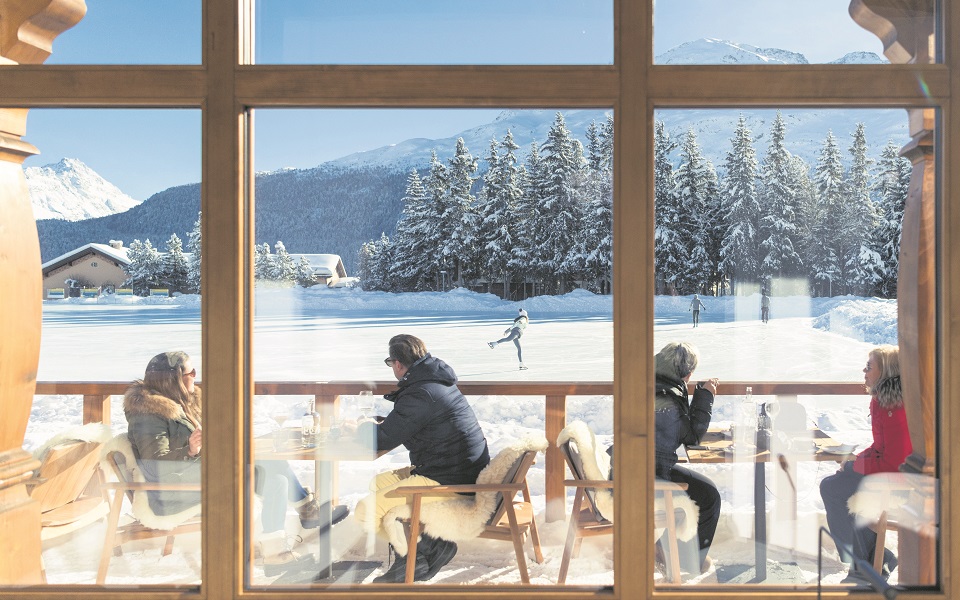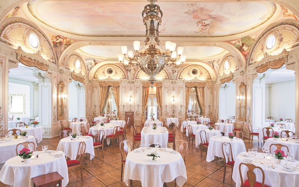 Many areas of the hotel have been recently refurbished. My junior suite – one of 112 bedrooms – blends classic and contemporary elegance, while the pale and calming lobby features majestic ceiling frescoes and is filled with light via the panoramic vista of the Roseg Valley. The cocktail bar, cigar lounge and billiards room are each cosy and sumptuous; tailor-made by designer Pierre-Yves Rochon for sophisticated après ski conviviality. The Grand Restaurant is a jacket and tie affair, with our hosts keen to preserve sartorial standards and the sense of occasion that greeted guests in previous centuries.