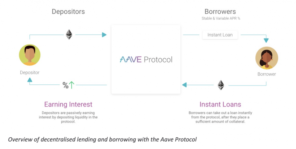 The most widely used applications in the DeFi space are lending and borrowing protocols. Aave, for example, is a DeFi protocol where users can deposit cryptocurrency assets to a liquidity pool and start earning interest on them while they are loaned out to borrowers. Interest rates for depositors are adjusted based on the liquidity supply and borrowing demand. Because there are no middlemen, rates for depositors have historically been higher than in a traditional bank. This has made DeFi lending protocols such as Aave an attractive way for people to maximize their passive income, as depositors accrue interest every second.