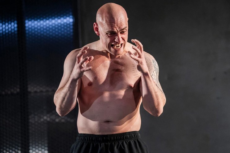 It’s a bizarrely structured play, largely told through the lens of a trial that never happened, in which Moat’s entire life is dissected by dispassionate judges, social workers and policemen. By the time we meet Moat in 2010, the walls are already closing in. He was accused of assaulting his young daughter, was being tailed by police, and a legion of landlords and lawyers were bearing down upon him. Throw in a damaged childhood, chronic steroid use and a shady past and you have a pressure cooker ready to explode.