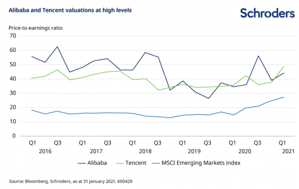 China’s e-commerce and other tech stocks have grown to be very large, very rapidly. Until now, there has been little in the way of regulatory scrutiny holding them back. In 2015, the Chinese authorities did open an investigation into Alibaba’s relationship with third party sellers, partly related to sales of fake branded goods. However, the current investigation, and the last-minute halting of the Ant Financial IPO, potentially point to a greater level of scrutiny in future.